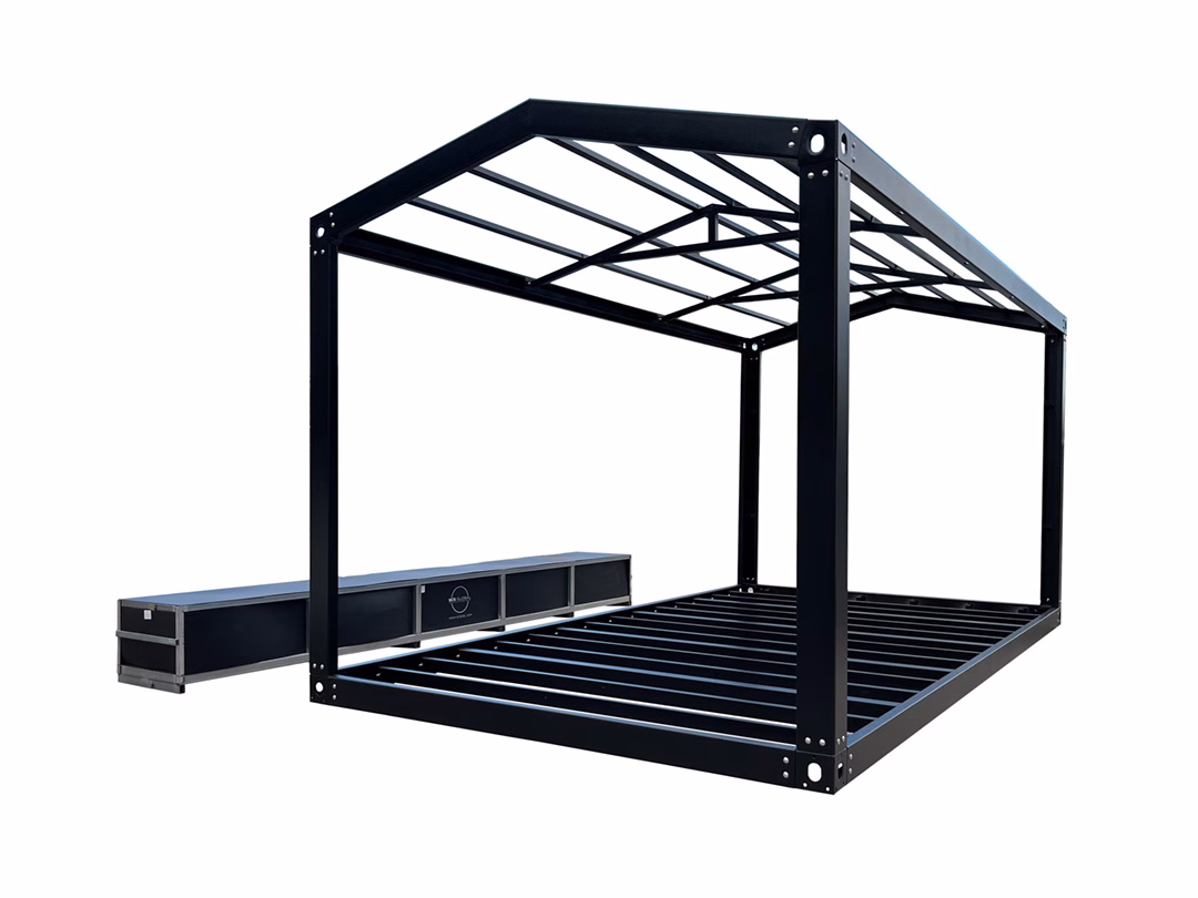 Transform your outdoor space with SCS Global’s FlexiFrame Steel Frame Kit (Pitched Roof), crafted for strength, durability, and endless possibilities. This robust frame is constructed from high-quality thick galvanised steel, uniquely powder-coated with four layers for unmatched protection and longevity. Whether you’re planning to build a carport, patio cover, tiny home, or extend your existing structure, our pitch roof frame provides a reliable and adaptable foundation. Designed to withstand the elements and heavy use, this frame features 2.6mm thick galvanised steel beams and arms, with base joists and roofing members made from thick galvanised steel. Its innovative design includes four sturdy lifting points, ensuring stability and ease of transport. Unlike other frames on the market, our powder coating process offers superior resistance to wear and tear, making it a standout choice for your construction projects. With the